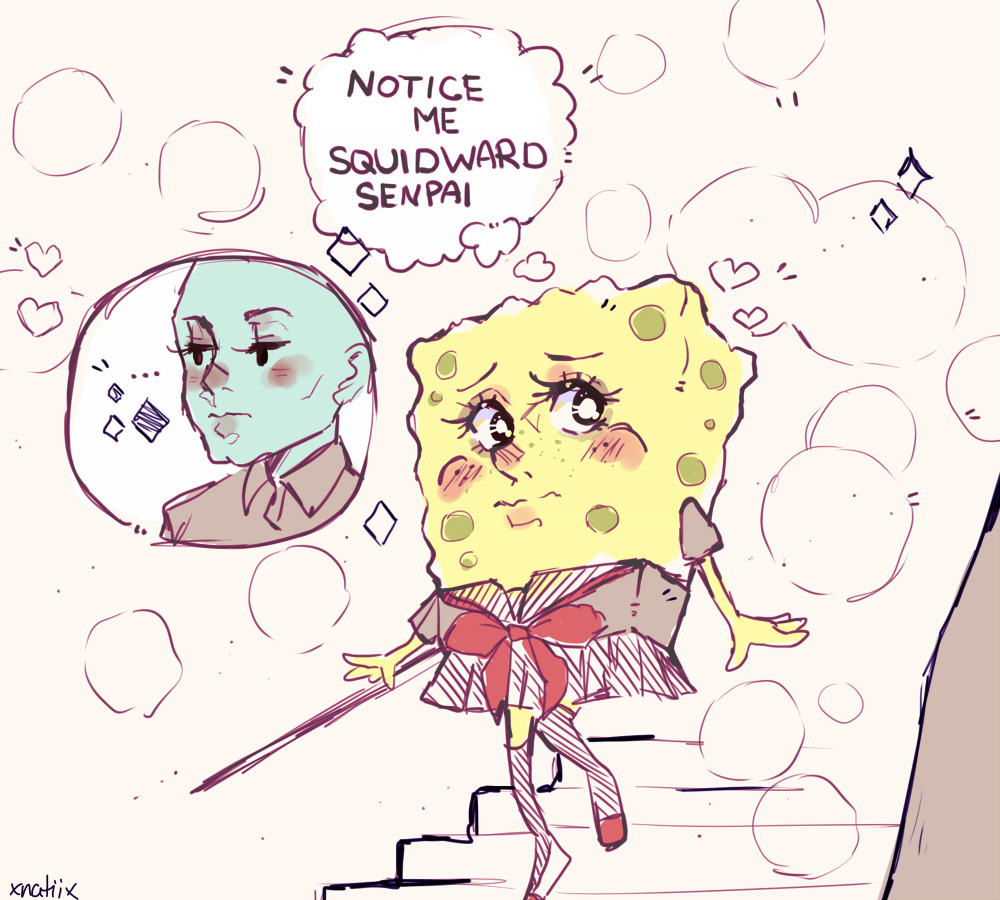 He maybe doesnt have a nose, ears and fingers and easily gets a sunburn but all what matters is his warm heart! Why dont you see that he is perfect for you, Spongebob? God I hate shoujo heroines!