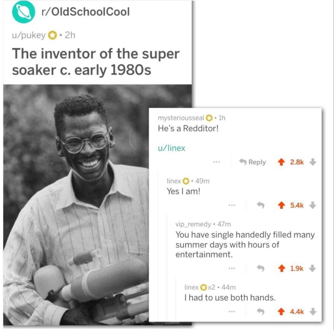 pastelgrandpa Ikke kategoriseret 23. august 20185. december 2018 1 Minute bisexualscotty: positive-memes: Wholesome Super soaker inventor! His name is Lonnie Johnson and he used to work at NASA! More from the same thread: Del dette: Share on X(Åbner i et nyt vindue) X Del på Facebook(Åbner i et nyt vindue) Facebook Like Henter... Relateret Offentliggjort af pastelgrandpa Vis alle indlæg af pastelgrandpa Udgivet 23. august 20185. december 2018