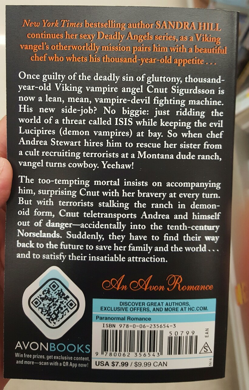 I was out with a friend tonight doing one of my fave things. Reading the backs of romance novels aloud. Found this gem.