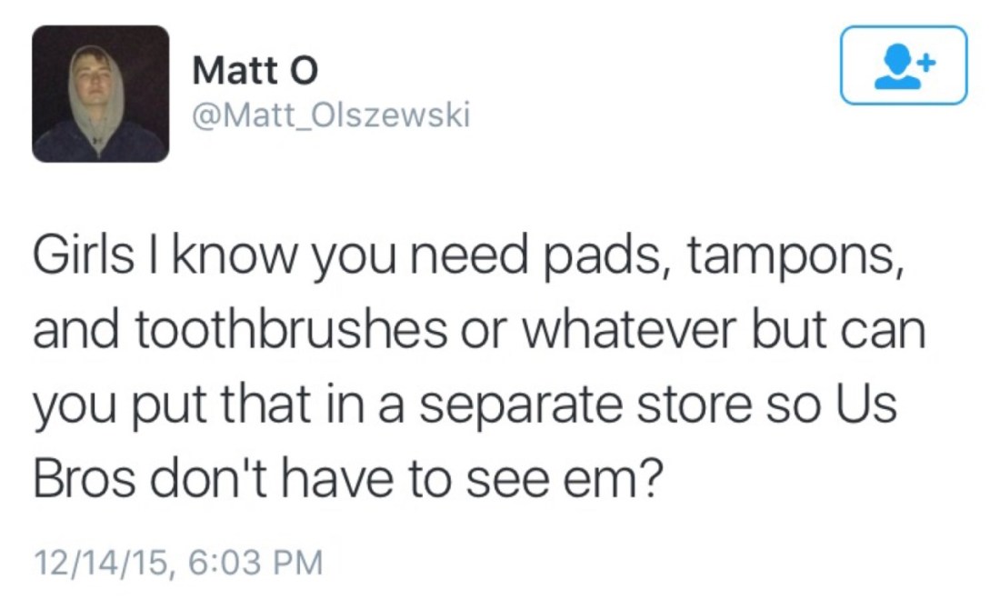 YES LADIES PLEASE DONT BUY THINGS YOU NEED FOR NORMAL BODILY FUNCTIONS AROUND US GUYS.