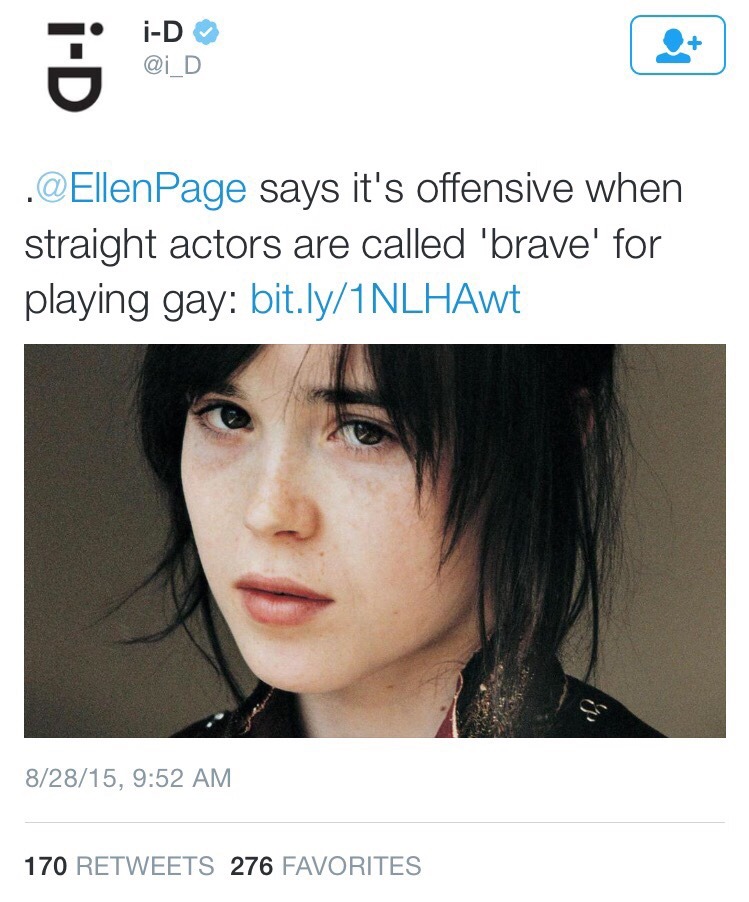 Ellen Page is right. You know what’s actually brave? Being actually gay and out in Hollywood!