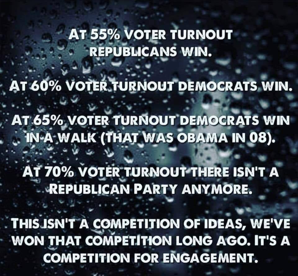 We teach all the wrong lessons about the American Revolutionary War. The real revolution, the earth-shaking part of it, wasn’t the fighting or the war or the killing. That’s just the bloody rhythm of human history. No. It was when they set up a system of government that handled power transfer peacefully through elections and stuck to it. It was when George Washington definitively and witheringly rejected any notion of being crowned king. It was when he stepped down after two terms when he probably could’ve coasted for a lifetime. And it was when he handed power to the next president peacefully, willingly, and as a required function of the system of government they were part of. Voting IS the revolution.