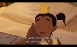 And you know what else? Unlike some of the other princesses, Tiana is in control of her destiny every step of the way. When she turns into the frog does she lose hope and need rescuing? Hell naw. She busts Naveen over the head and gets the job done. She is consistently responsible and capable even after having her dreams crushed and turning into a freaking frog.
